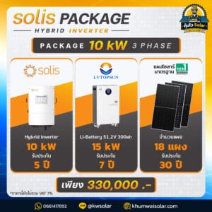 ชุดโซล่าเซลล์ Hybrid 10kW | Inverter Solis | ระบบไฟ 3 เฟส พร้อมแบตเตอรี่ LVTOPSUN