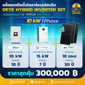 ชุดโซล่าเซลล์ Hybrid 10kW | Inverter DEYE | ระบบไฟ 1 เฟส พร้อมแบตเตอรี่ LVTOPSUN