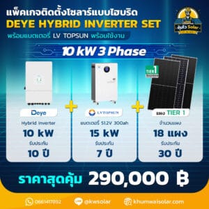 ชุดโซล่าเซลล์ Hybrid 10kW | Inverter DEYE | ระบบไฟ 3 เฟส พร้อมแบตเตอรี่ LVTOPSUN