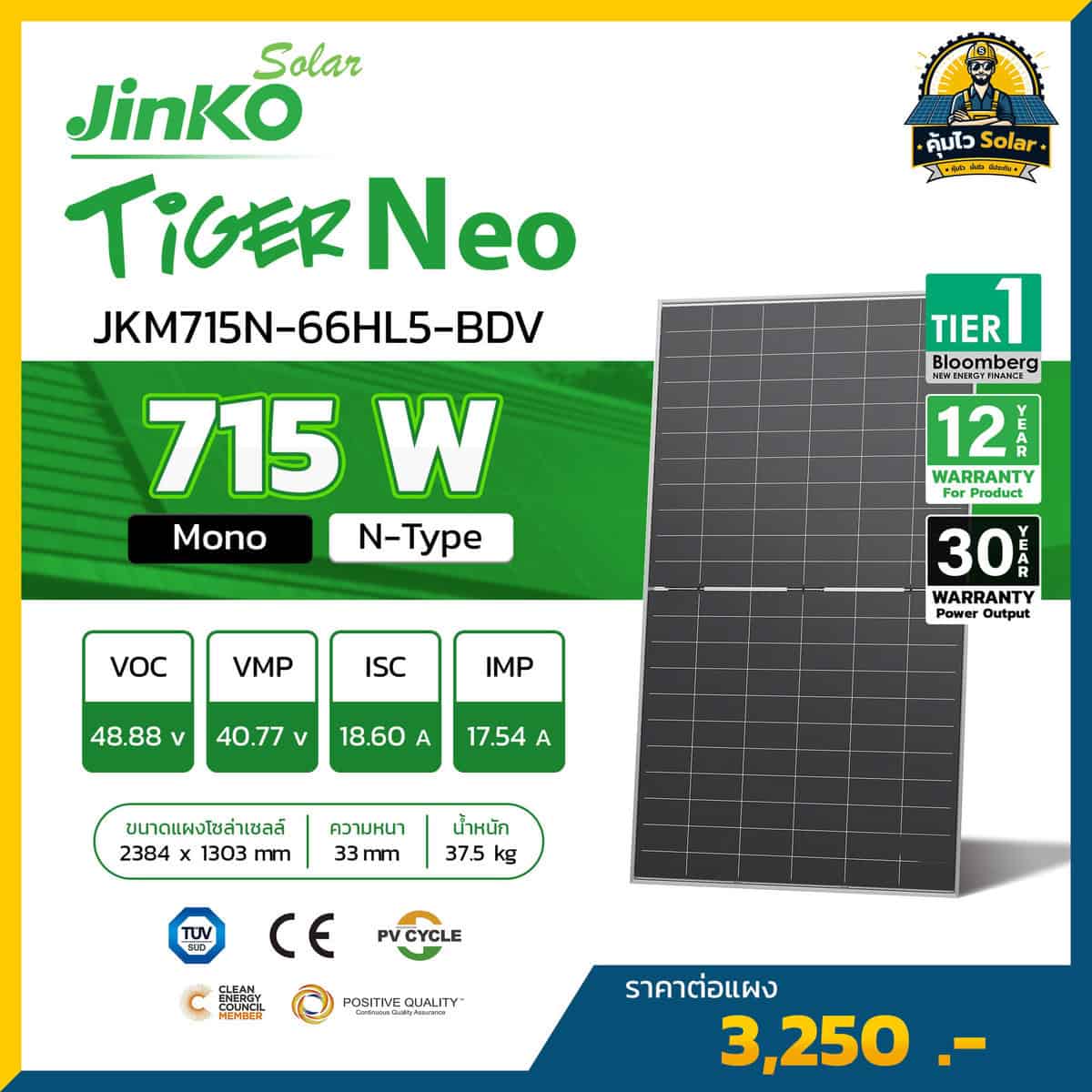 อ้างอิงจาก Datasheet รุ่น JKM715N-66HL5-BDV